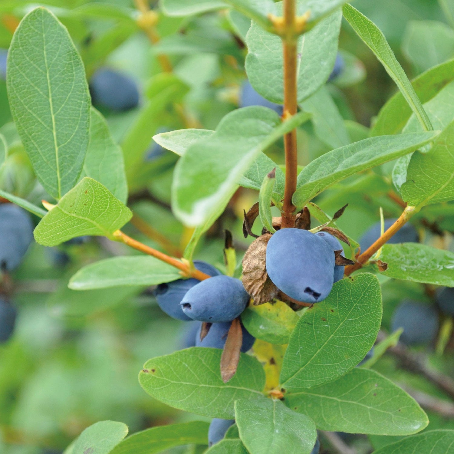 ハスカップは、スイカズラ科スイカズラ属の植物の名前で、酸味の強い青紫色の小さい果実をふたつ一組で実らせるのが特徴。名前の由来は、アイヌ語の「ハシカプ=枝の上にたくさんなるもの」からきています。