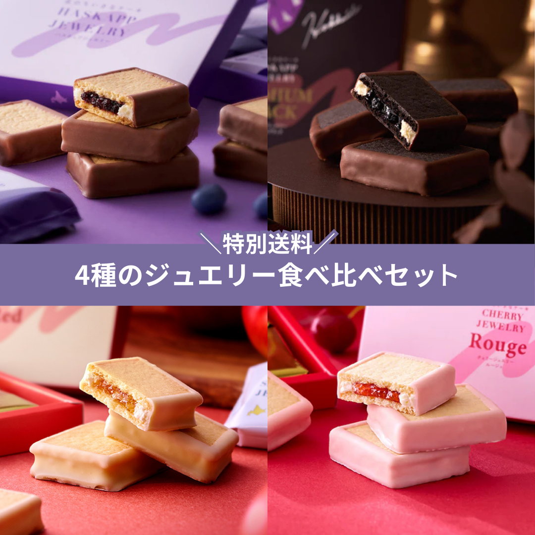 季節限定の「アップルジュエリー ルビーレッド」「チェリージュエリー ルージュ」に「ハスカップジュエリー・プレミアムブラックMIX」を詰め合わせた特別送料セット。