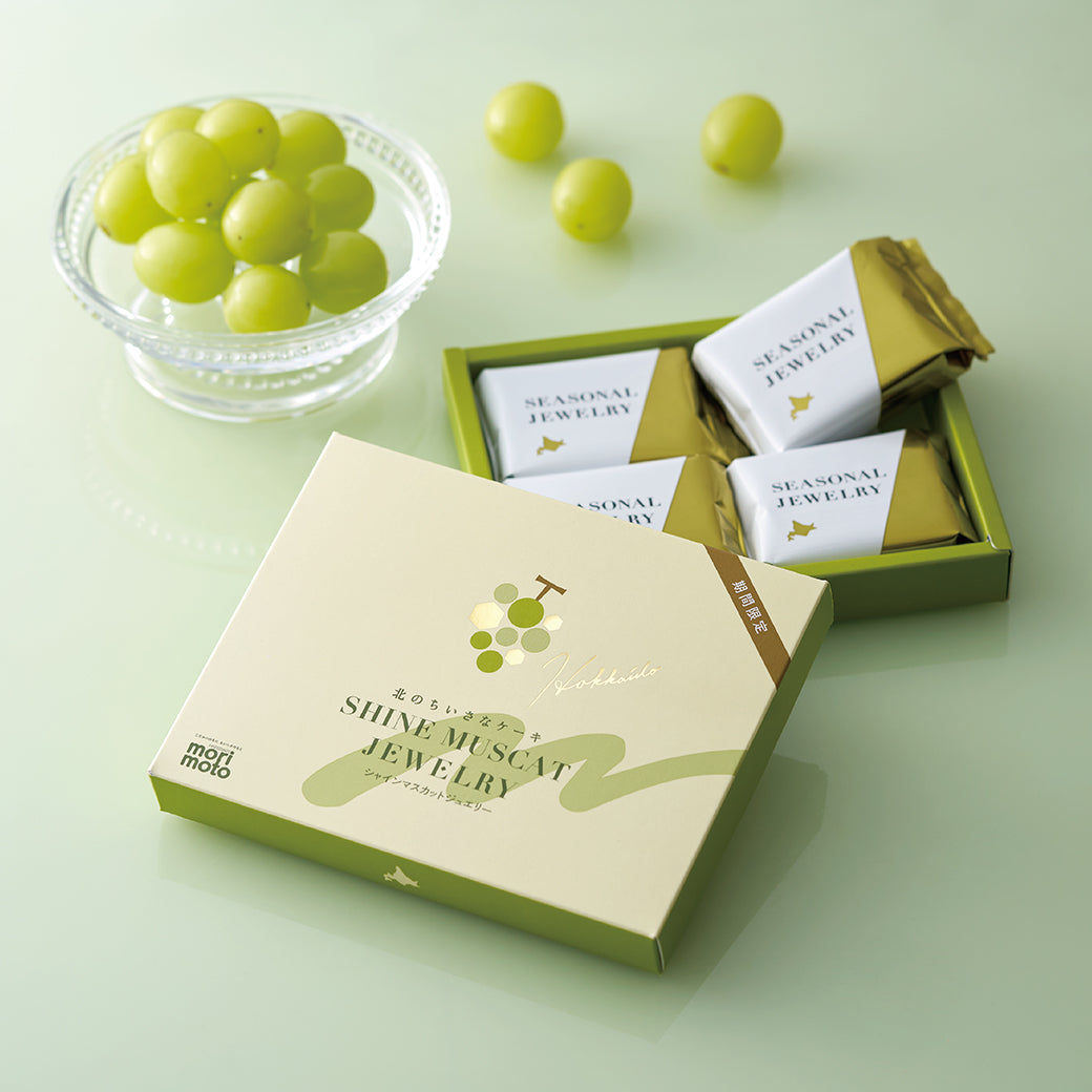 定番の3種のハスカップジュエリーや季節限定のシャインマスカットジュエリーに加えて、大好評!冬季限定のゆきむしスフレグランスノーなど様々なお菓子を堪能できるセット。