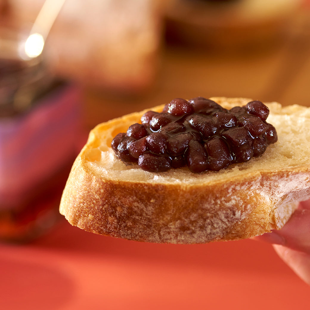 新小豆の豊かな風味と程よい甘みの餡はそのままでも美味しくお召し上がりいただけますし、もちろん、パンやアイスなどにも良く合います。