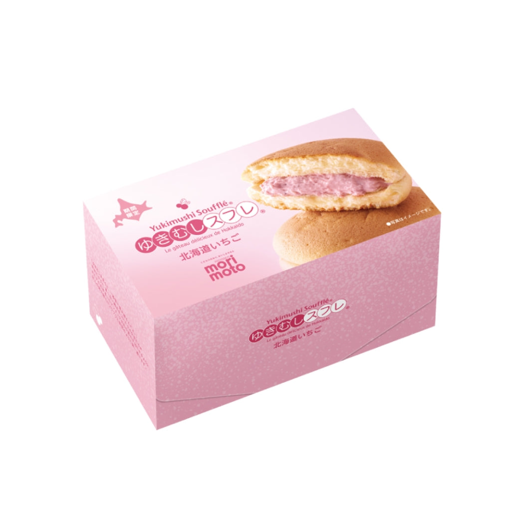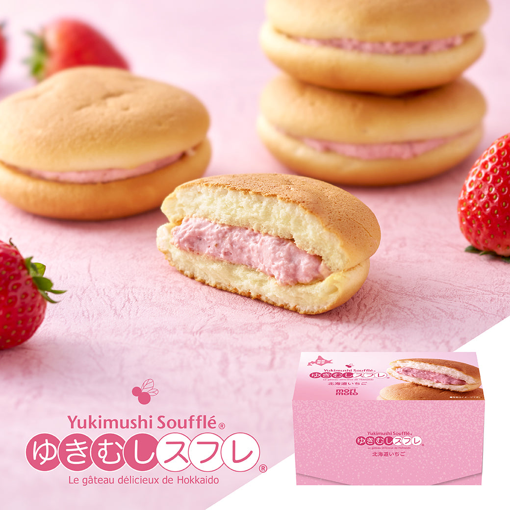 初雪のようにやわらかな食感と口どけの生地に、なめらかなクリームをサンドした人気商品「ゆきむしスフレ」から、季節限定で「北海道いちご」が登場!