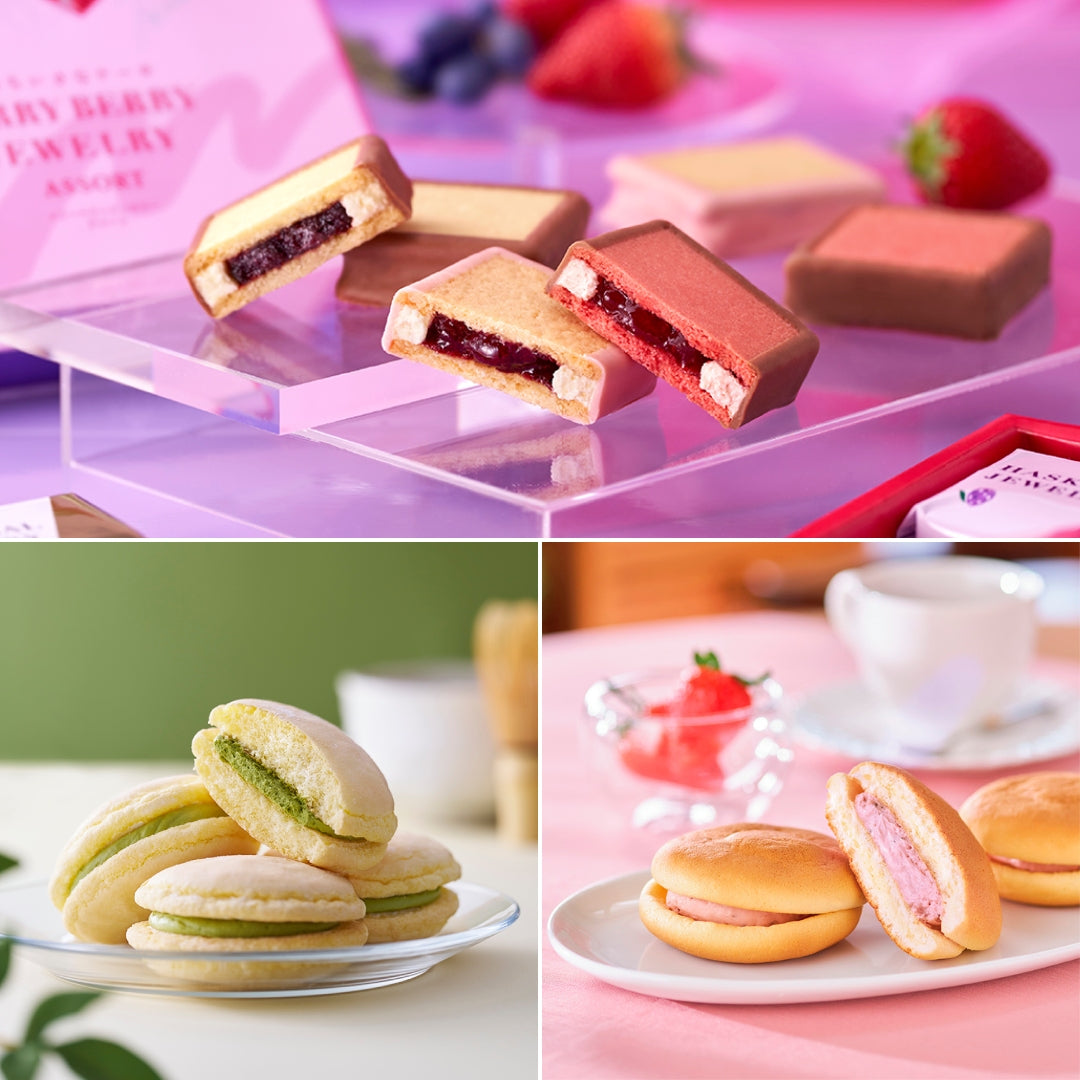 北海道の2つの果実が輝く新商品「ベリーベリージュエリー アソート」をはじめ、初夏の新緑を思わせる「雪鶴抹茶」、甘酸っぱい春のふわふわ「ゆきむしスフレ北海道いちご」をセットにしました。