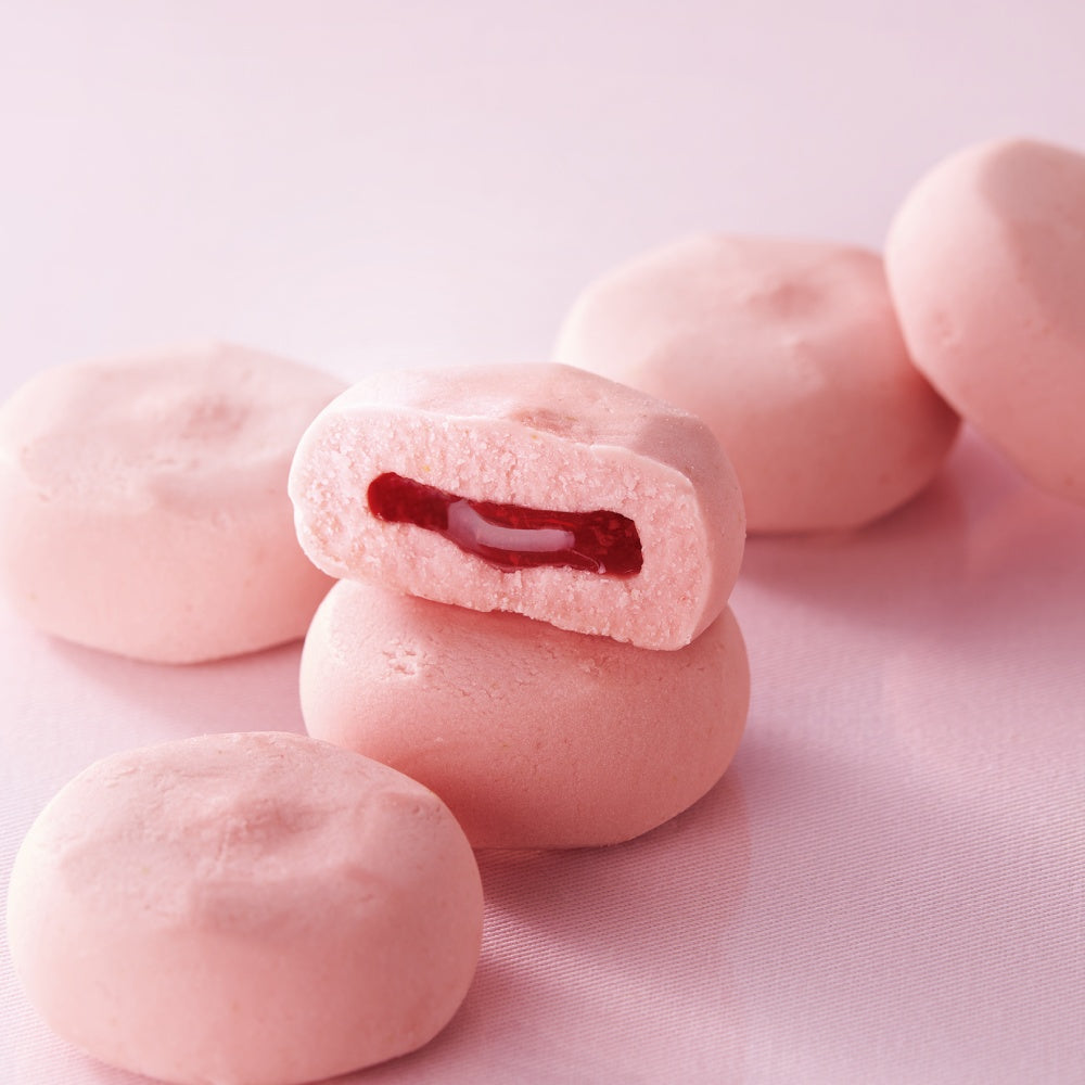 中にはとろ~り甘い北海道いちごのソースを閉じ込めました。こだわりの製法で仕上げた「ほろっとほどけて、とろ~りとろける」2つの食感と味わいをお楽しみいただけます。